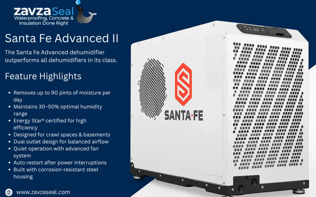 That’s where Zavza Seal comes in. As Long Island’s trusted waterproofing and crawl space experts, we install Santa Fe Advance2 and Santa Fe Classic dehumidifiers, high-capacity systems built specifically for New York’s coastal climate. These Energy Star®-rated units deliver lasting protection against mold, condensation, and structural decay, while improving comfort and air quality year-round.