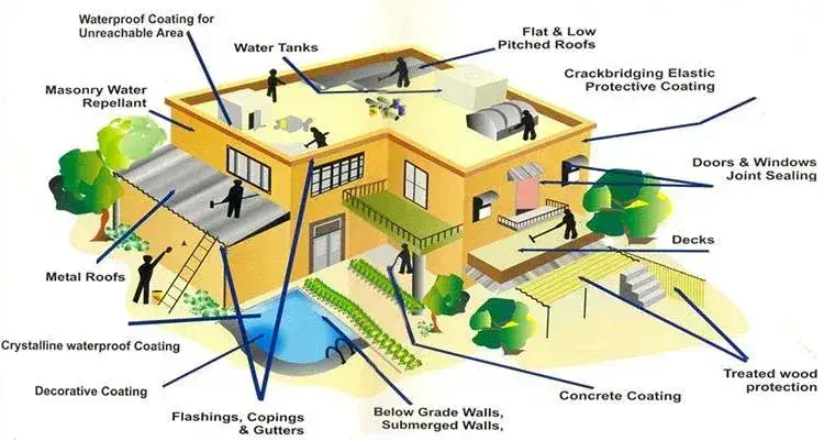 Liquid rubber coatings provide flexible waterproof protection. Once cured, the material forms a seamless membrane that adapts to small structural movements.