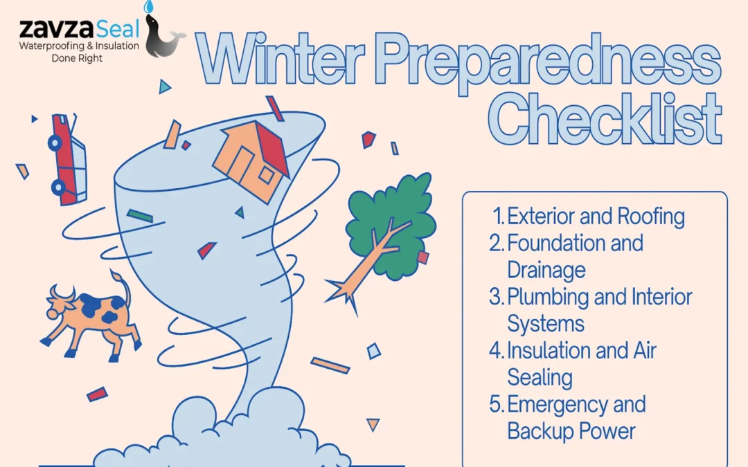 That’s why Zavza Seal created this comprehensive Winter Storm Preparedness Checklist; designed to help homeowners protect their property before the cold sets in. Our certified waterproofing and insulation teams inspect, seal, and fortify your home against freezing rain, heavy snow, and hydrostatic pressure buildup beneath the soil.