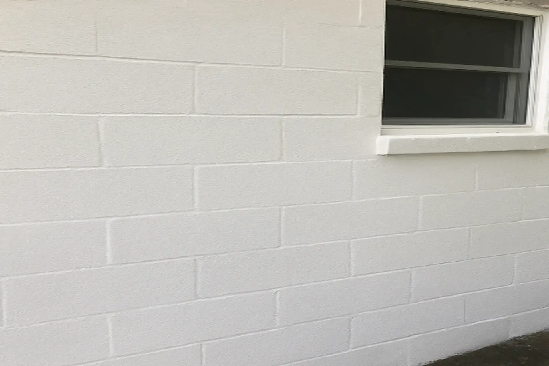 To fully protect the repair, we applied a premium white waterproof coating. This seals out moisture, prevents freeze-thaw damage, and gives the wall a clean uniform appearance.