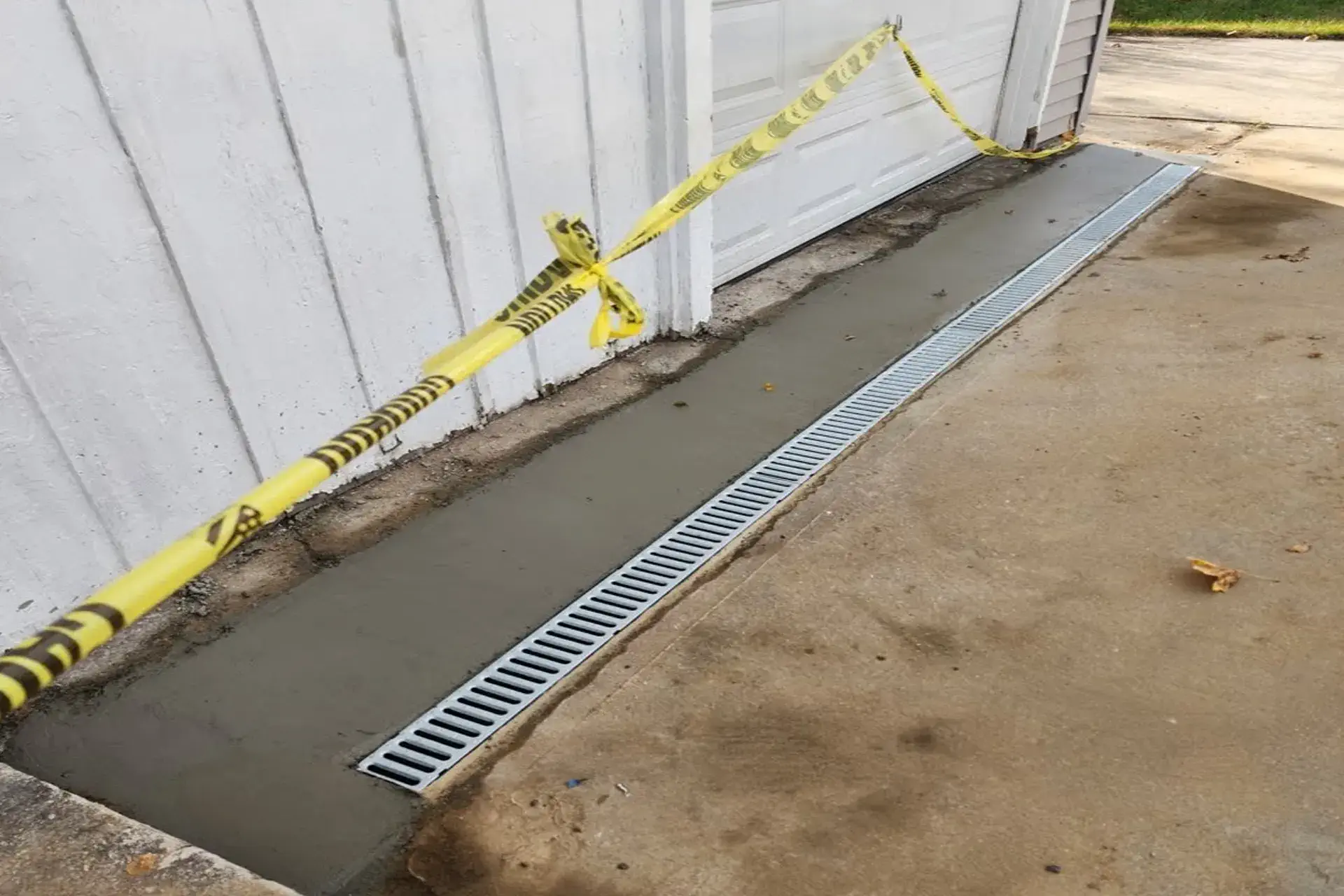 The completed project in Holbrook delivered a stronger, safer, and more functional garage entrance. Surface water is now effectively captured by the storm drain and redirected away from the structure, reducing the risk of flooding and moisture damage. The new concrete apron provides long term durability, while the reinforced underpinning adds critical structural support to the garage foundation.