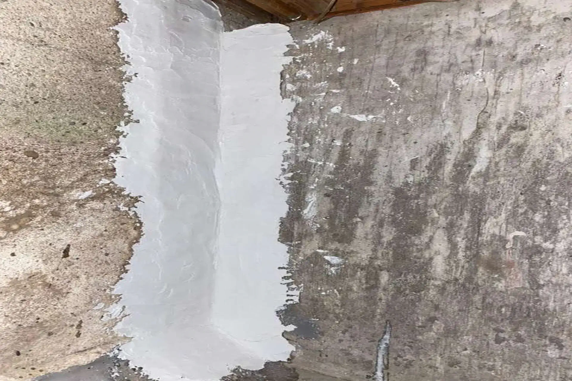 A 4.5 ounce fiberglass mesh was embedded into the waterproofing layer to add flexibility and reinforcement. This helps prevent new surface cracking and ensures the repair lasts for decades.